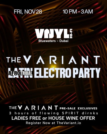 Feel the exhilarating vibe of The Variant's Latin-Afrotribal Electro Party, a prime nightlife event in Dubai!